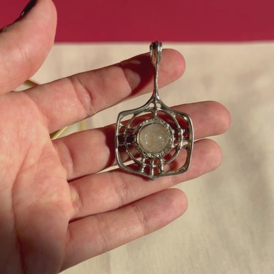 David Andersen Norway Vintage Brutalist Pendant with Rutilated Quartz