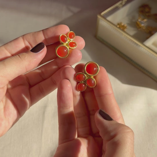 David Grau Vintage Clip-on Earrings in Gold with Carnelian Glass Cabochons