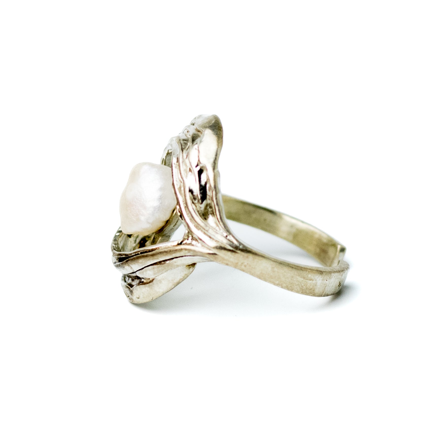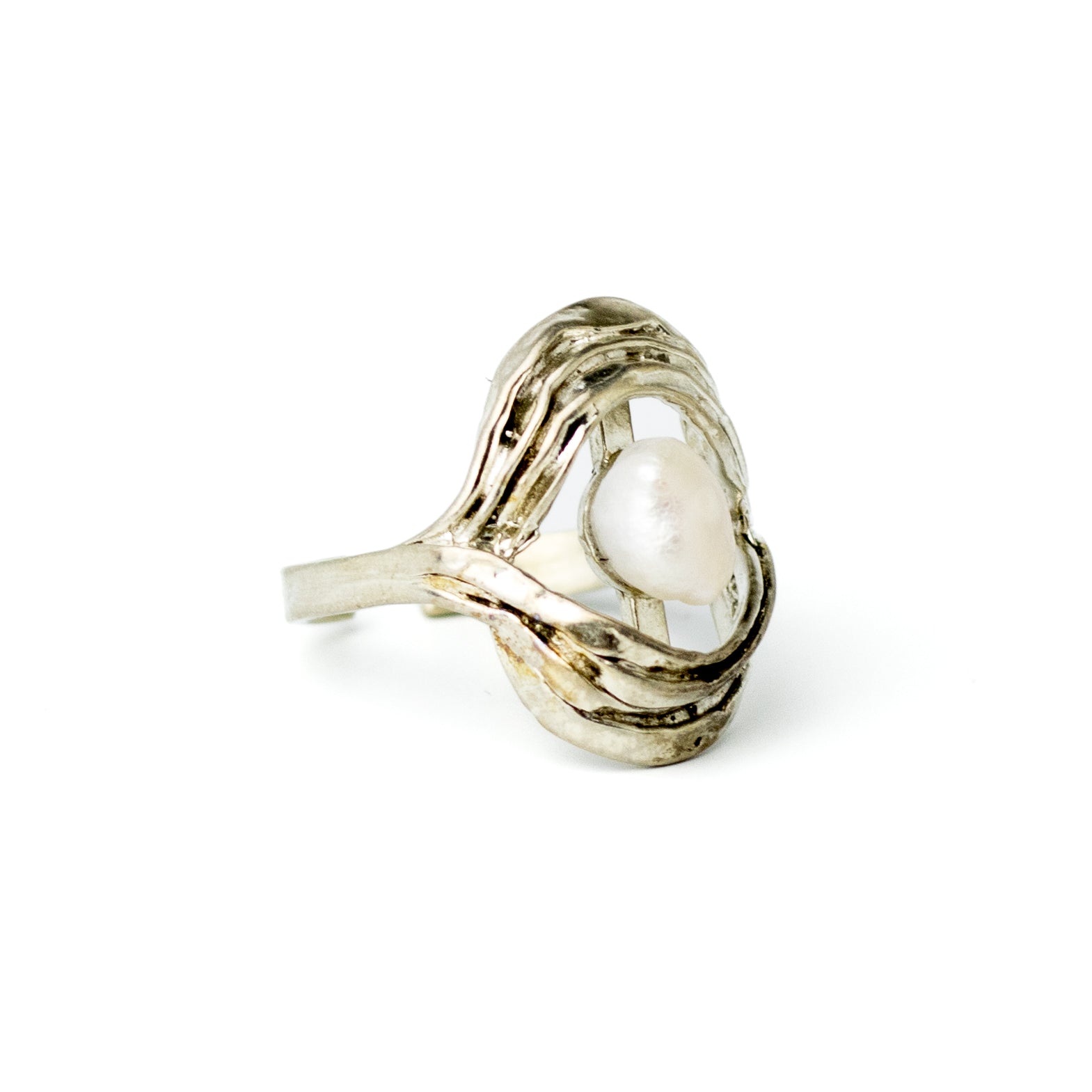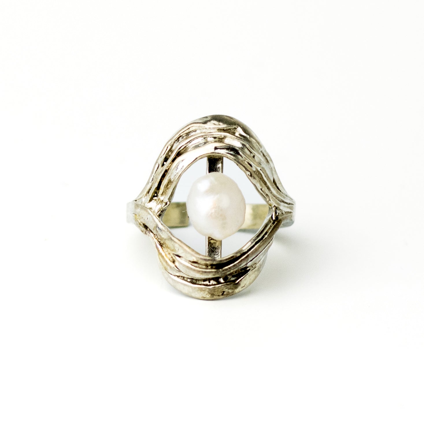 Perli Germany Brutalist Sterling Silver Ring with Natural Pearl