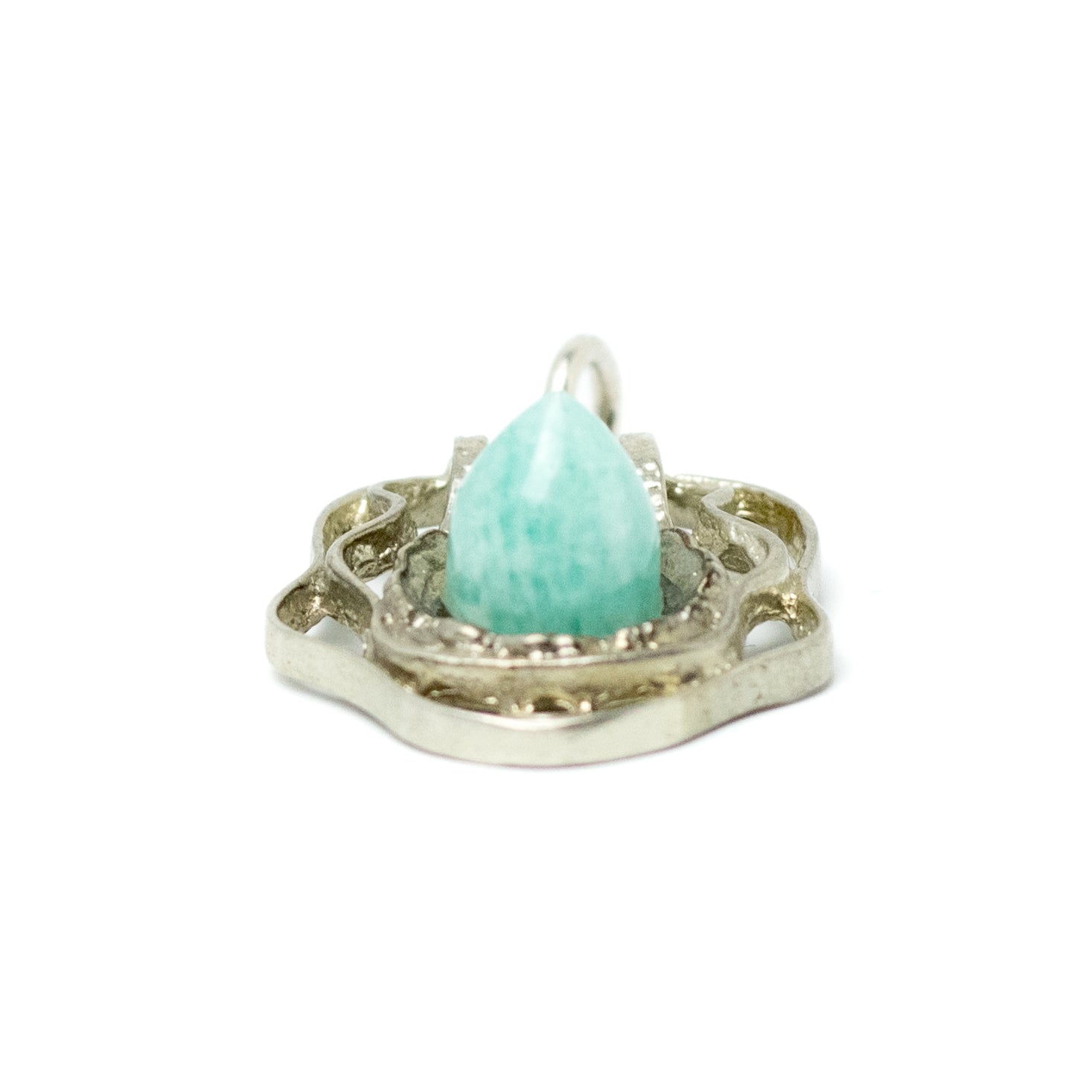 Excellent vintage condition. The amazonite gemstone is free of visible chips or cracks. Please review all photos carefully as they are part of the item description.