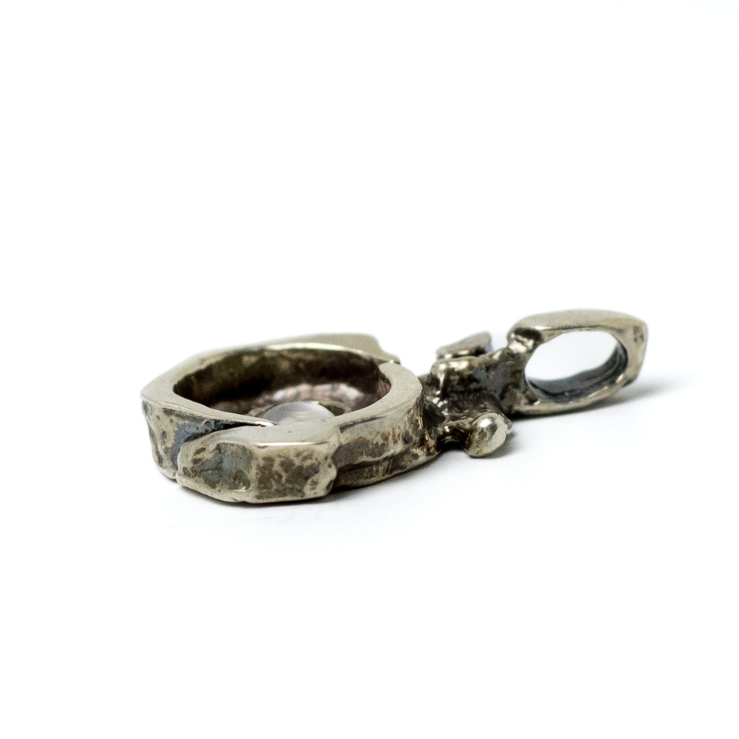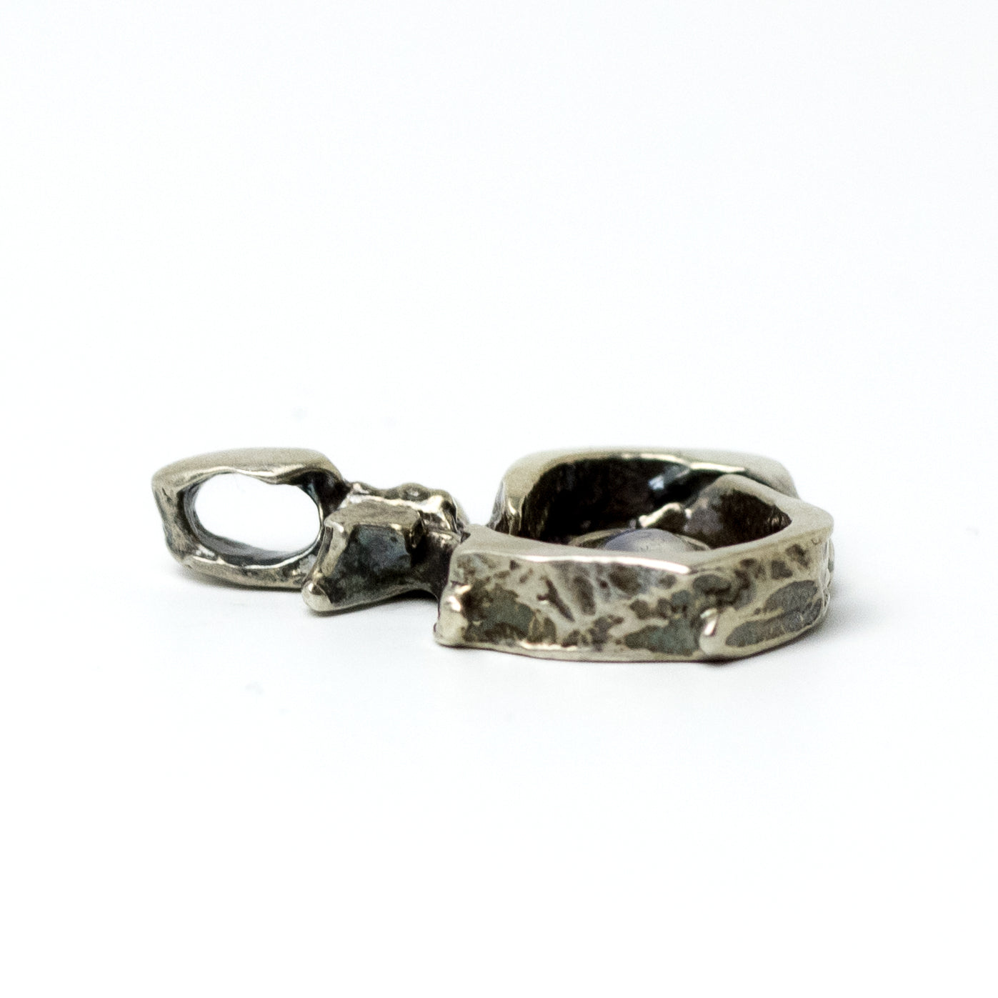 Brutalist pendant in 835 silver set with a round moonstone cabochon in an organic, sculptural setting. Continental modernist design, likely 1960s–1970s.