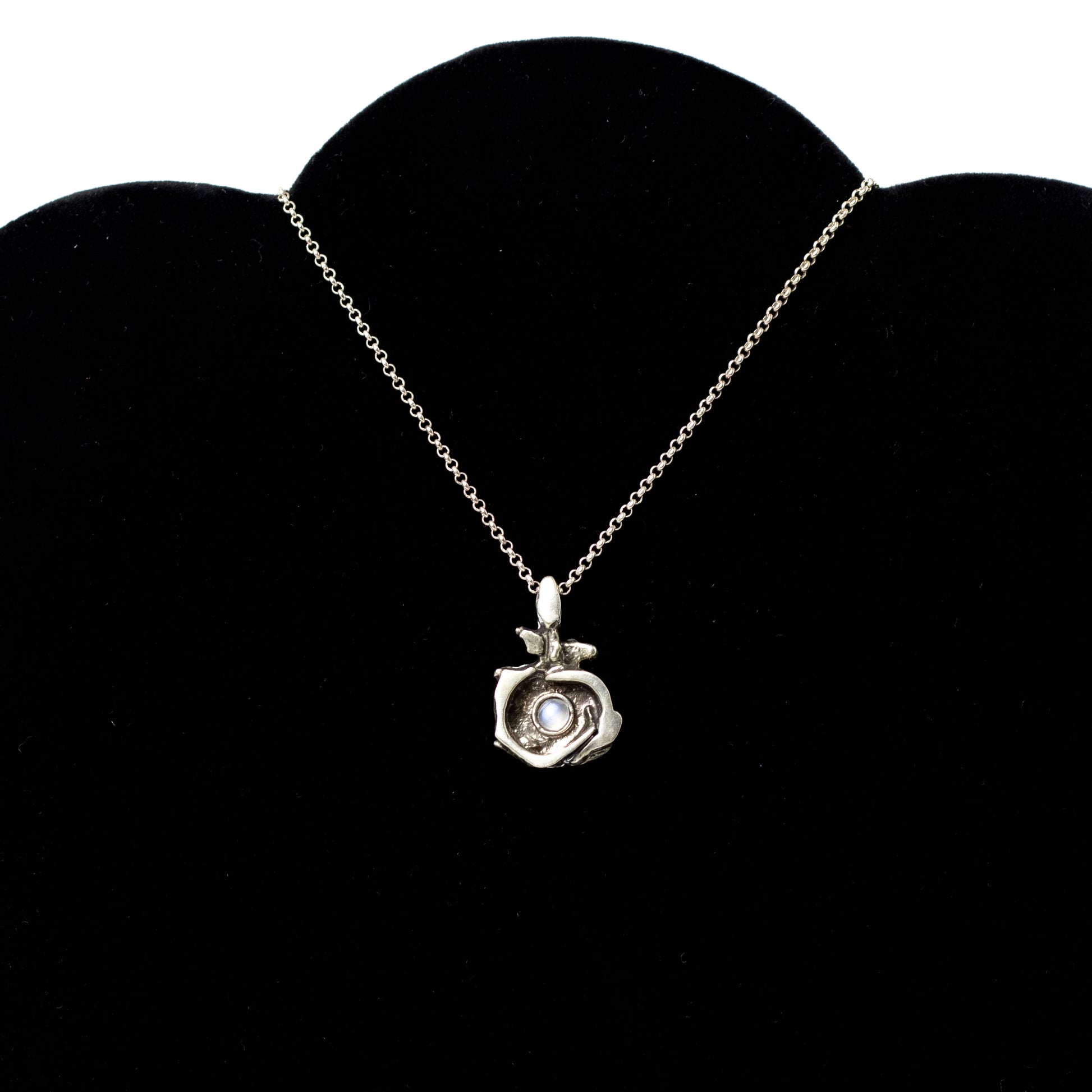 Vintage Brutalist Silver Rose Pendant with Moonstone
