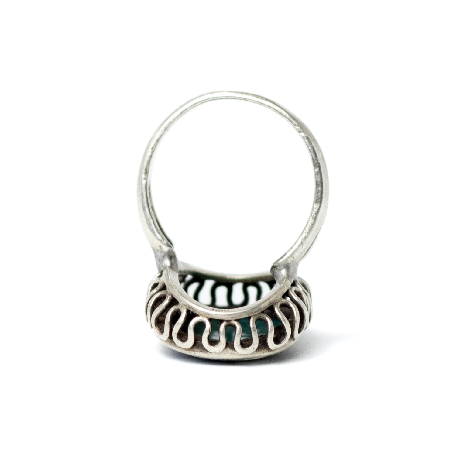 Vintage Silver Cloisonné Enamel Ring With Greek Woman Motif